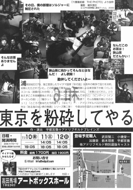 浦和世紀0079、独立宣言したサイタマ国家「彩の国」は長年の戦争で国力を消耗、劣勢に立たされていた。この局面を打開すべく、空挺部隊による東京降下作戦「パレススコール(宮殿のにわか雨)」で一気に首都制圧をもくろむ。「本隊とはぐれた。とりあえずここを前線基地とする」「あのーここ僕の家なんですけど」「ピンポーン(インターホンの音)」「敵かっ!第一次戦闘配置!」「勧誘?そんな陽動作戦にのるかっ!」「ところであなたたち何者?」「ほぇ?」・・・アドリブギルド22カ月ぶりの新作は「ある海のない県の物語」シリーズ第二弾!今度は彩の国兵士が東京を襲撃?